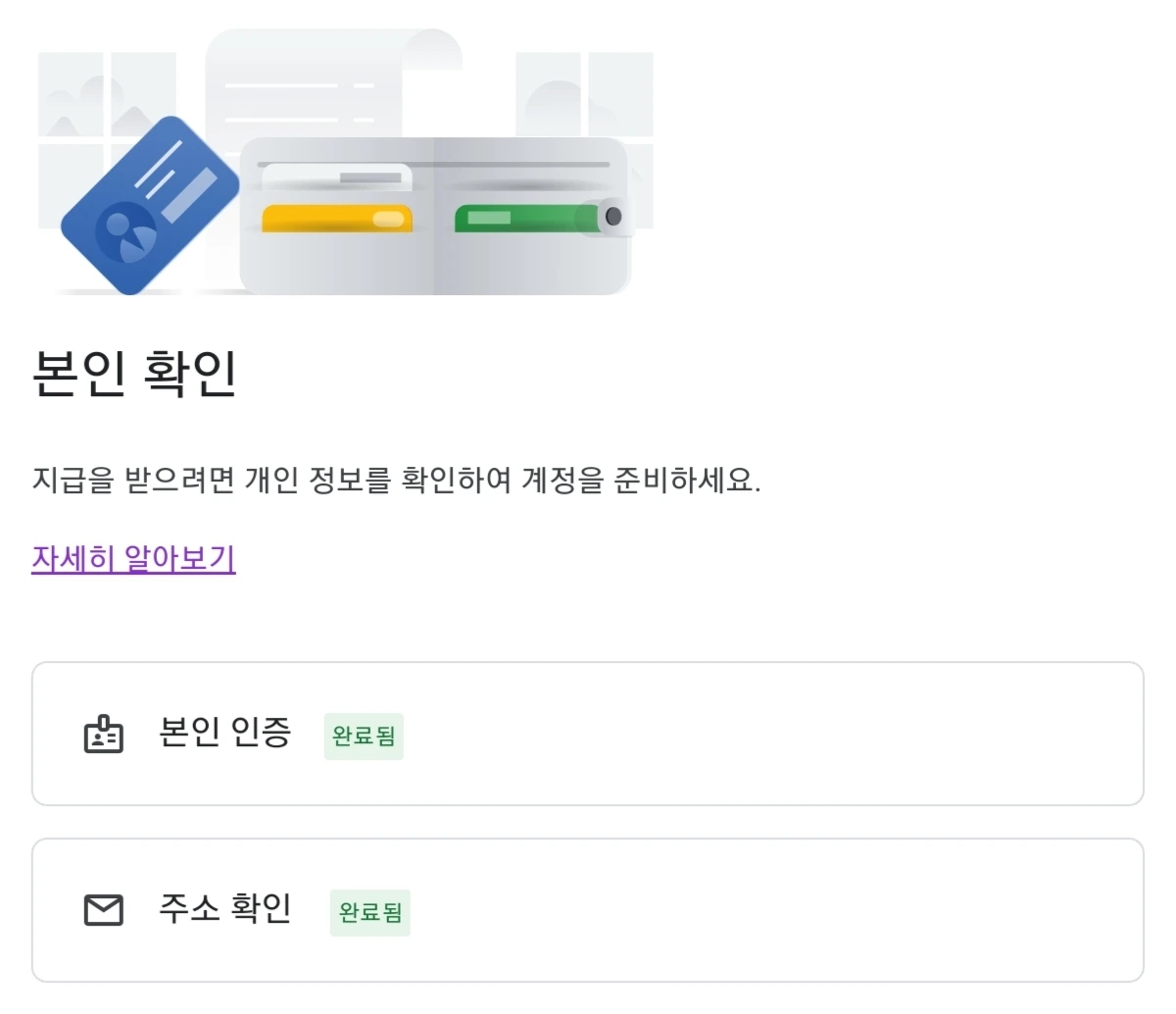 본인 인증과 주소 확인 완료 후 단계