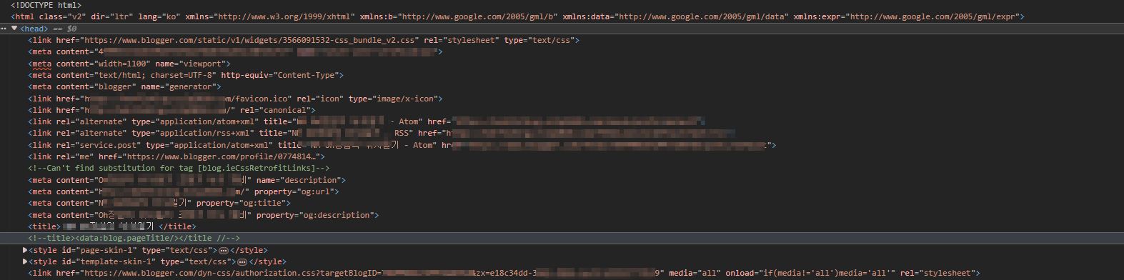 구글 BlogSpot을 이용하면 블로그의 제목과 페이지 제목이 <title>