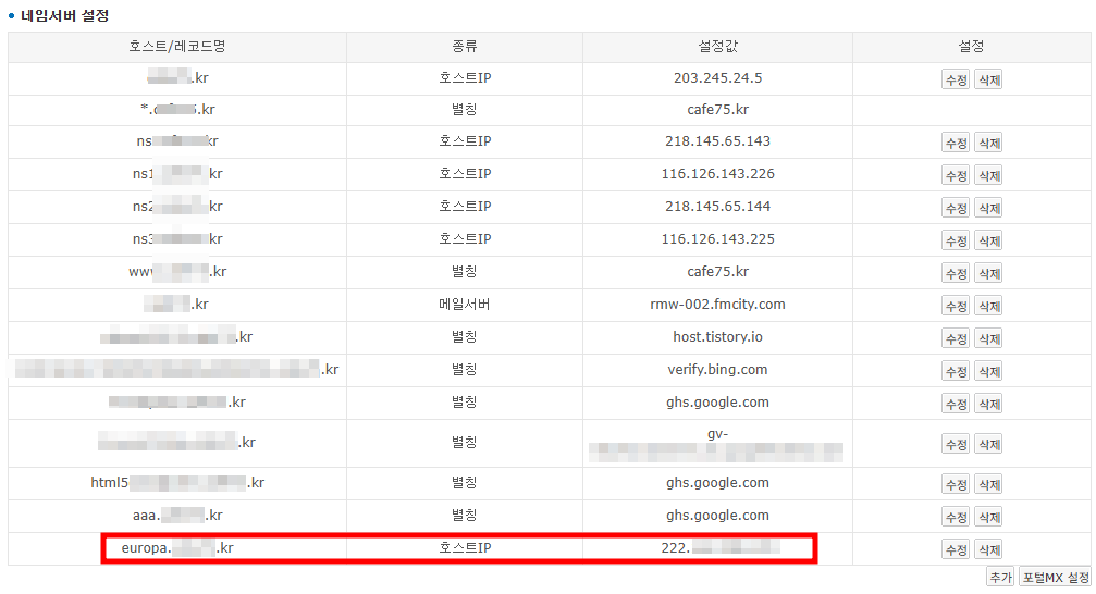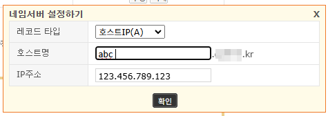 - 호스트 부분에 본인이 설정하고자 하는 주소를 입력합니다. 예를 들어 abc와 같이 주소 앞에 넣고 싶은 부분을 적습니다.