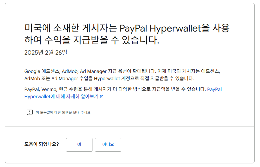 키워드: 애드센스, 하이퍼월렛, 수익금, 수수료, 세금, PayPal, 송금, 환전, 국내 은행, 지급 방식