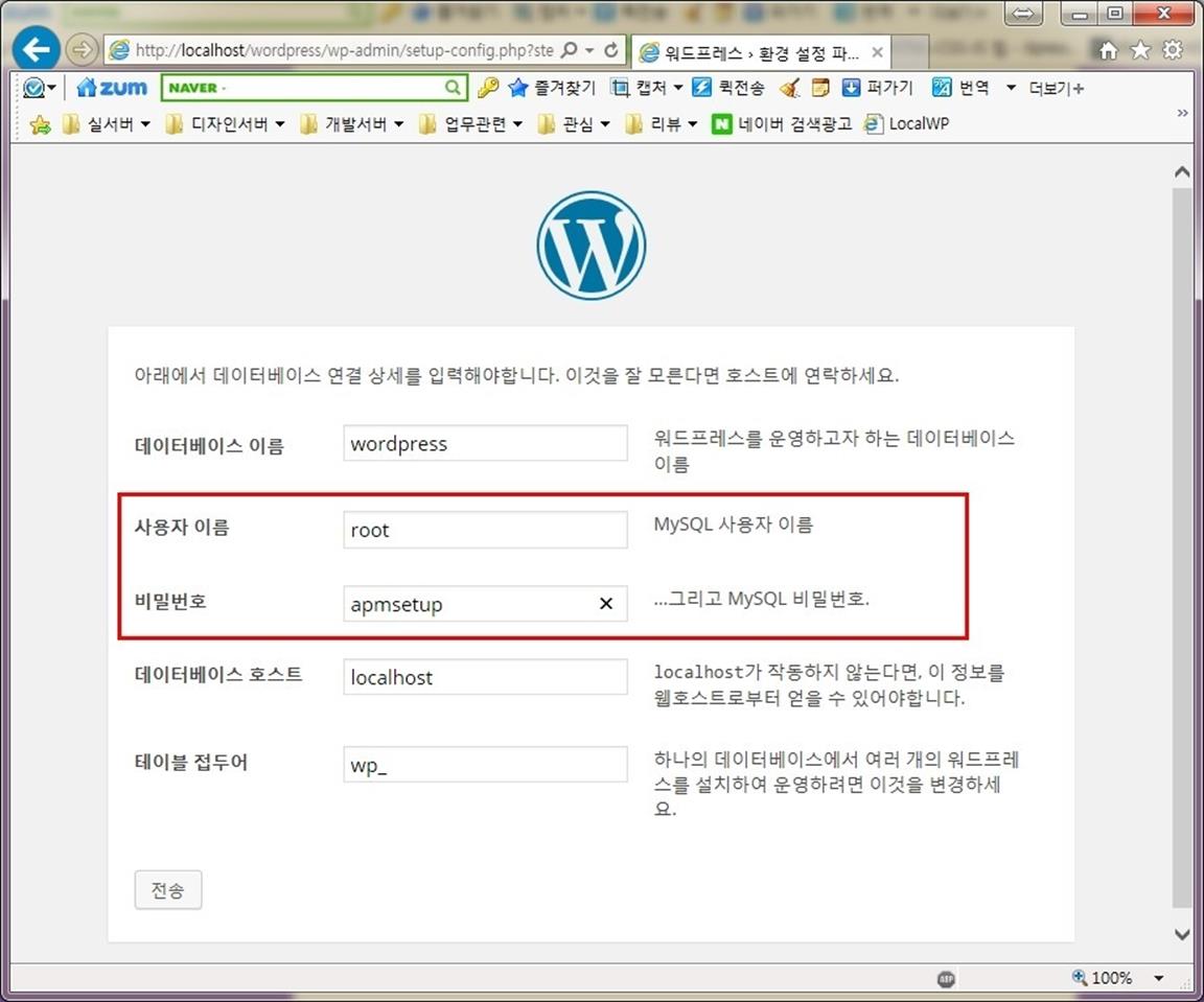 나머지 설치 과정은 일반적인 워드프레스 설치 과정과 동일하다.