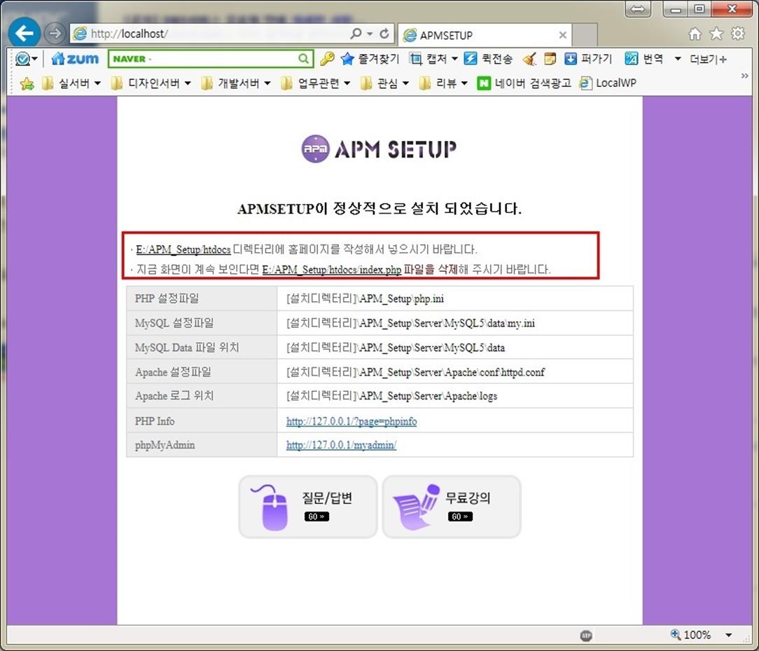 apmsetup 7 for win 32 실행하기가 체크된 상태로 마침을 누르면 apmsetup이 실행된다.