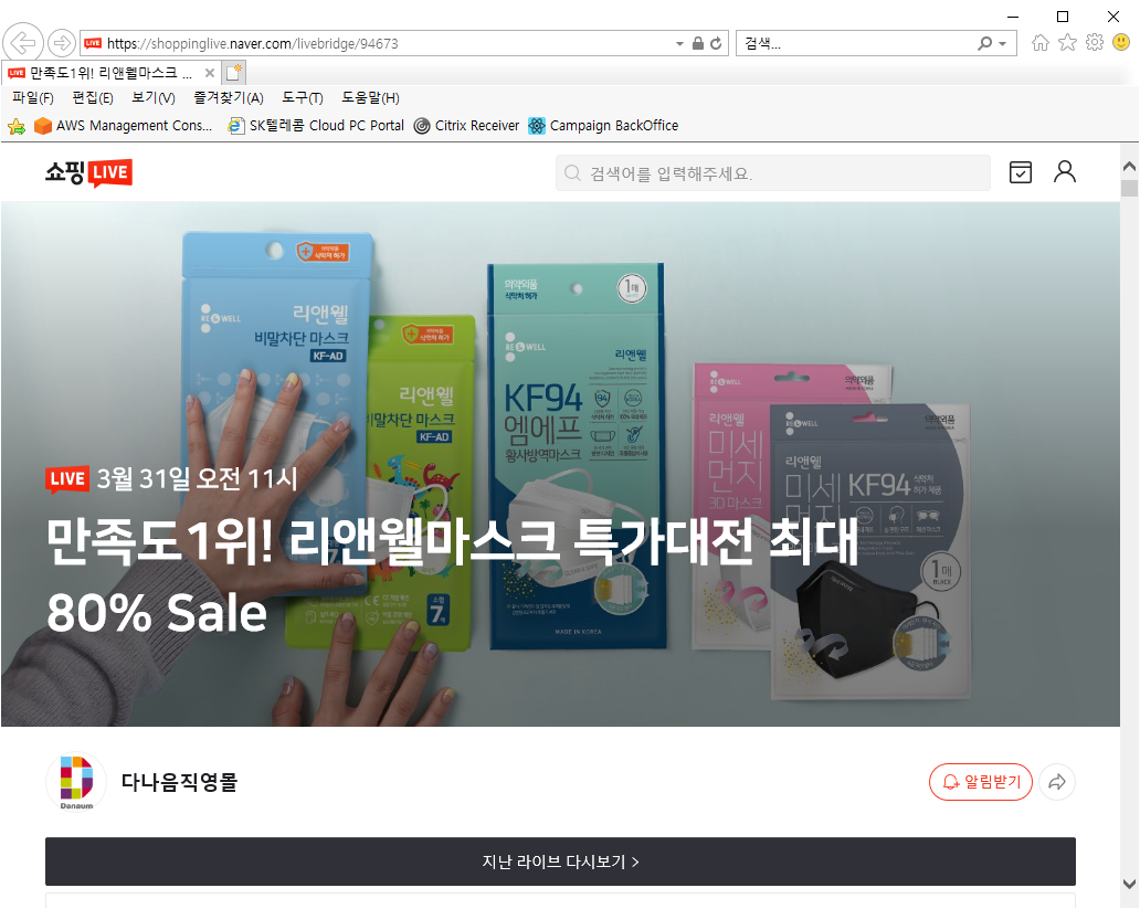 리앤 웰 마스크? 다 나음 직영몰? 아니다 쇼핑 라이브 채널을 운영하는 네이버(주)가 개객끼다.