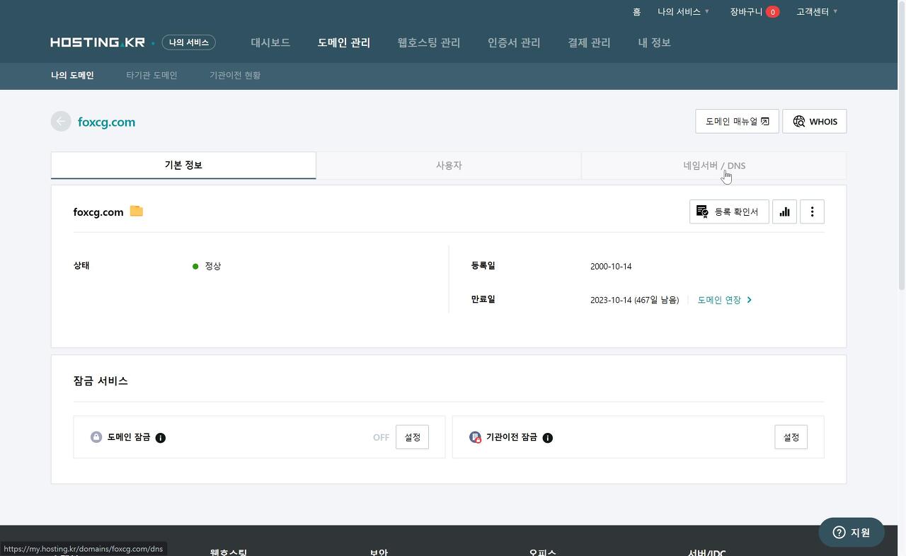 - 여기서 '네임서버/DNS 관리'로 이동하여 설정을 시작합니다.