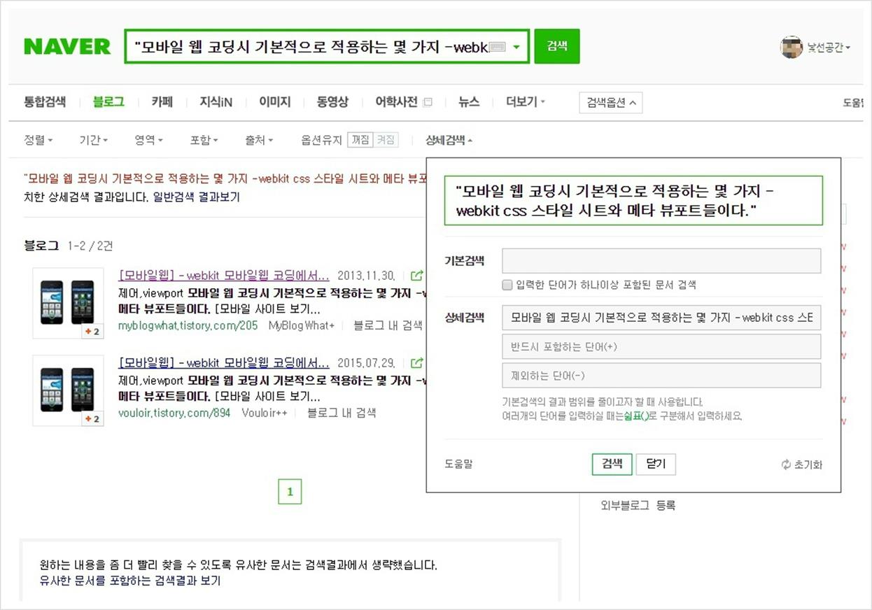 이런 글들이 존재하는지 확인하는 방법은 옮길 글의 일부 문장(문장 내에 특수 기호가 없는 문장을 선택)을 네이버의 상세 검색에서 검색해 봅니다.