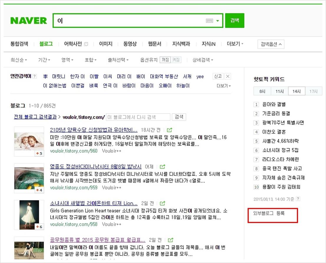 아무튼 찾아낸 유사문서들은 우측에 있는 "외부 블로그 등록"을 통해서
