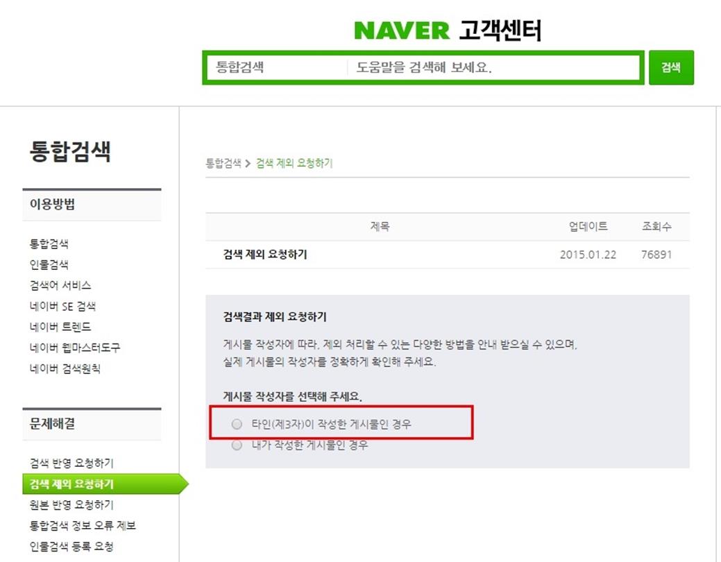 고객센터의 검색 제외 요청 메뉴에서 검색 제외를 요청합니다.