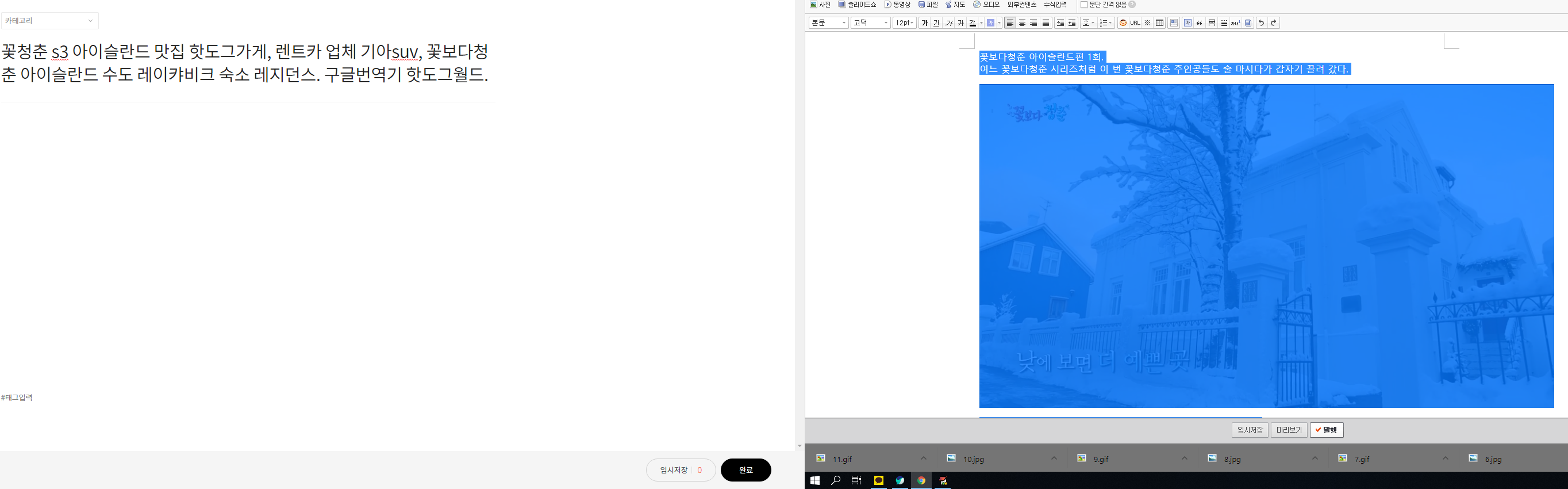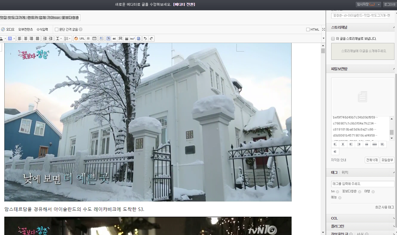 이럴 경우 일일이 다운로드 받아서 새로 업로드할 필요 없이 그냥 글 전체를 구에디터에서 Ctrl+C 한 뒤에 에디터 전환을 한 새 에디터에서 Ctrl+V 해 주면 이미지가 자동으로 업로드되고 깔끔하게 정리가 된다.