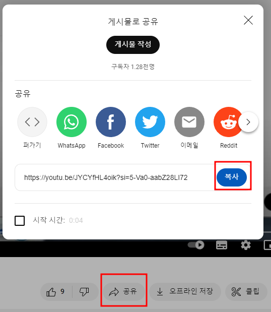 - 공유 버튼 클릭: 영상 아래에 있는 '공유' 버튼을 클릭합니다.