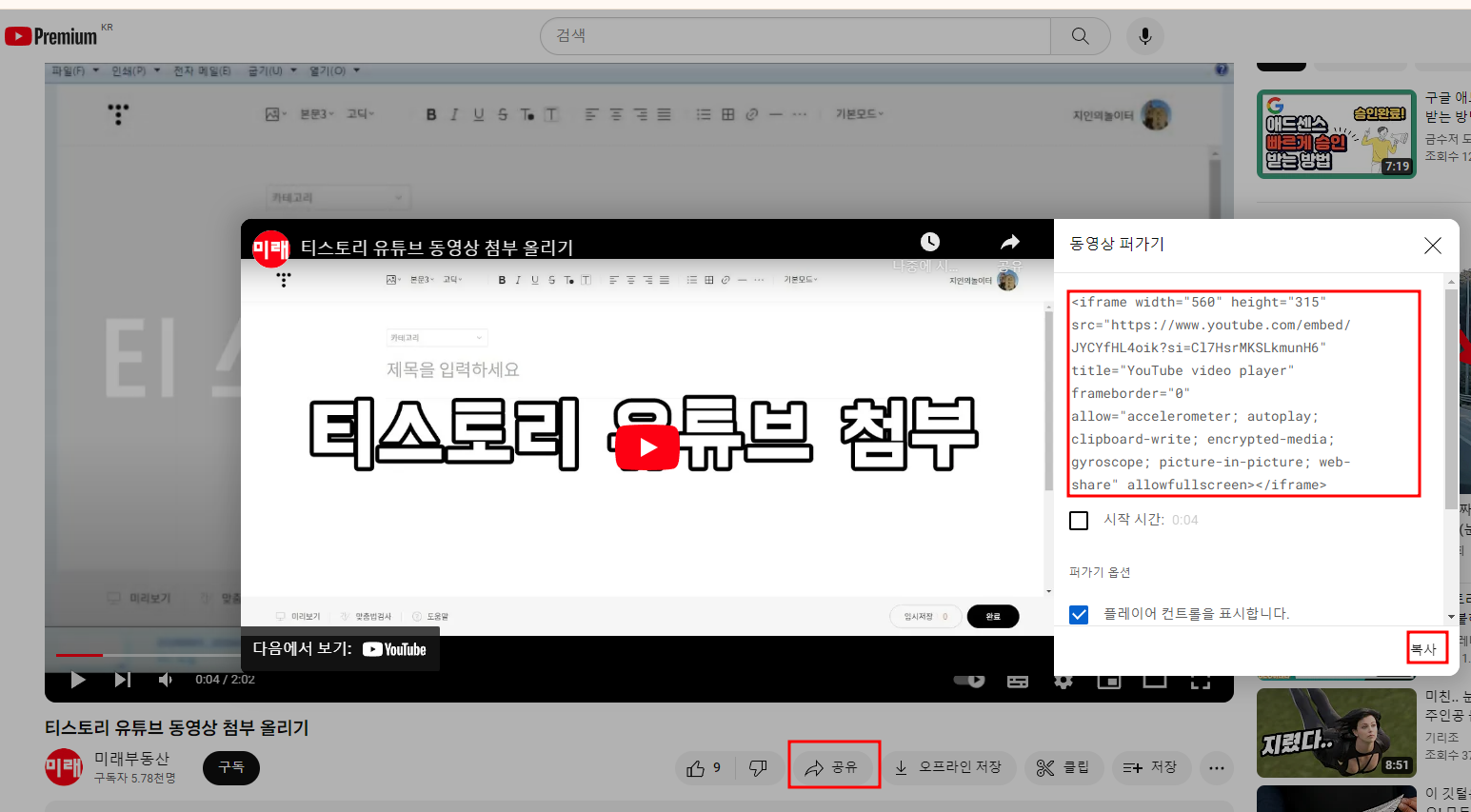 티스토리 유튜브 동영상 첨부 쉬운방법