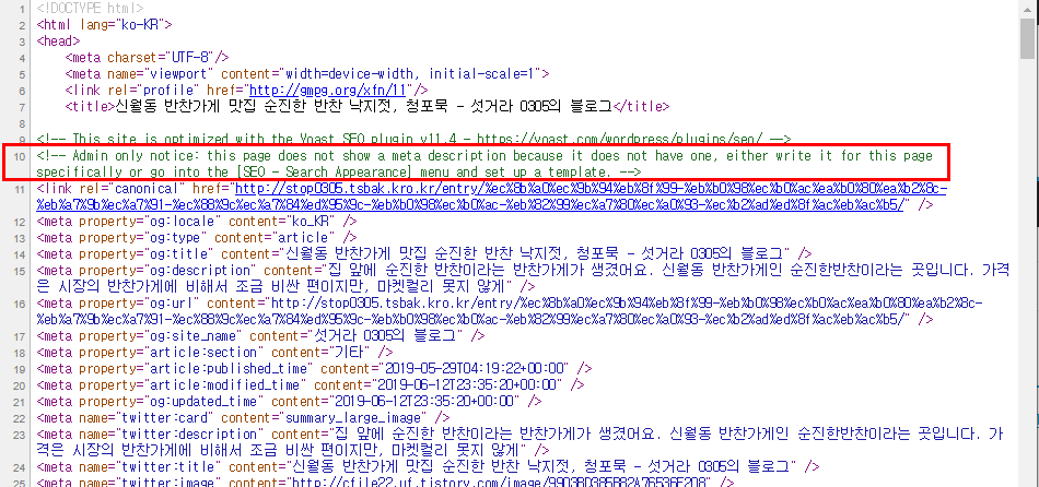 아무튼 찜찜해하던 차에 Yoast SEO 플러그인이 meta description을 뿌리지 않고 있다는 사실을 발견했다.